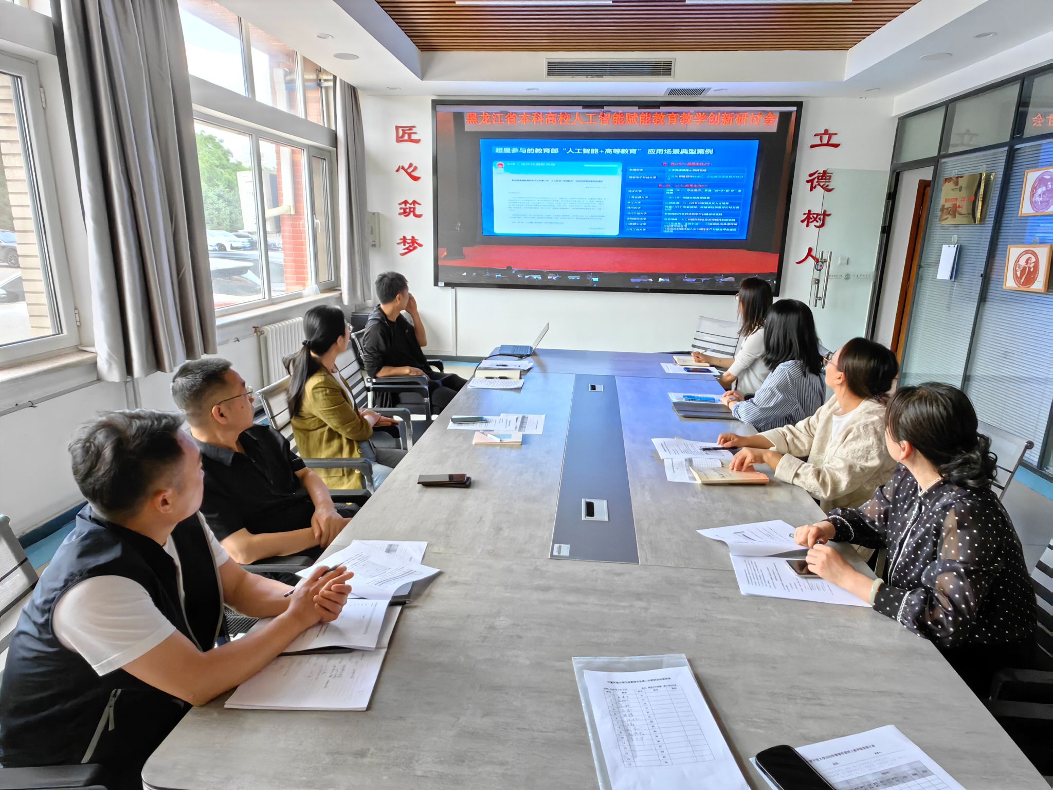 活动伊始,全体参会教师线上参加了由哈尔滨师范大学主办、超星集团协办的“黑龙江省本科高校人工智能赋能教育教学创新研讨会”,与会教师通过在线学习与交流,深入探索了人工智能赋能教育教学改革的创新路径,重点研讨了如何优化调整学科专业布局、推动课程教材与教学体系的智能化升级。