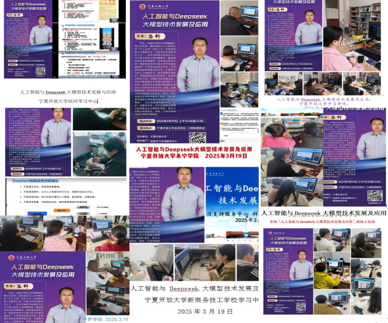 为深化广大师生对人工智能前沿技术的认知,探索大模型赋能行业创新的实践路径,3月19日,远程学习支持服务中心特邀中国科学院大学教授、博士生导师、宁夏师范大学“六盘”学者特聘教授吕科在米兰游戏官方网站(中国)米兰有限公司官网金凤校区六楼智慧教室作题为“人工智能与DeepSeek大模型发展及应用”的专题讲座。远程学习支持服务中心全体教师、继续教育学院、质量监控与评价中心相关教师代表线下参加讲座,米兰游戏官方网站(中国)米兰有限公司官网200余名课程责任教师、22所基层办学单位教师线上参加讲座。