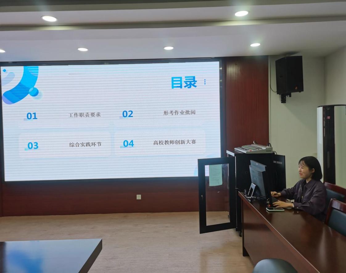 随后,专业负责人杜楠老师紧扣教学常规,从课程责任教师履职规范、形考作业质量管控、综合实践指导流程、教学竞赛赋能机制四个方面明确工作要求。针对在线课程管理的痛点,杜楠老师着重强调全体教师需认识到保持稳定的在线教学互动频率是构建师生教学共同体的基础保障;规律性参与教学研究活动是推动课程质量迭代升级的关键路径;严谨执行形考作业全批全改是落实学习过程评价的重要环节;深度参与综合实践环节指导是促进学生贯通理论与实践的必由之路。