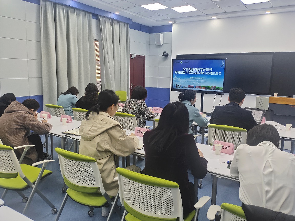 3月24日上午9点,远程学习支持服务中心(宁夏终身教育学分银行管理中心)在金凤校区智慧教室组织召开宁夏终身教育学分银行综合服务平台及实体中心建设推进会。远程学习支持服务中心(宁夏终身教育学分银行管理中心)主任纳晓菁、副主任雷丽华、副主任杨晓燕及部门相关工作人员、项目承建方代表到场参会。国家职业教育学分银行专家鄢小平、上海学分银行主任陈海建、重庆开放大学学分银行主任吴南中、云南学分银行主任危兵、新疆开放大学学分银行副主任艾克帕尔•阿合买提以及江苏省教育科学研究院副所长陈向阳在线上参与了本次研讨。本次会议由杨晓燕副主任主持。
