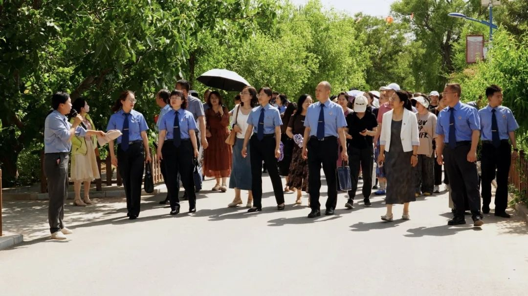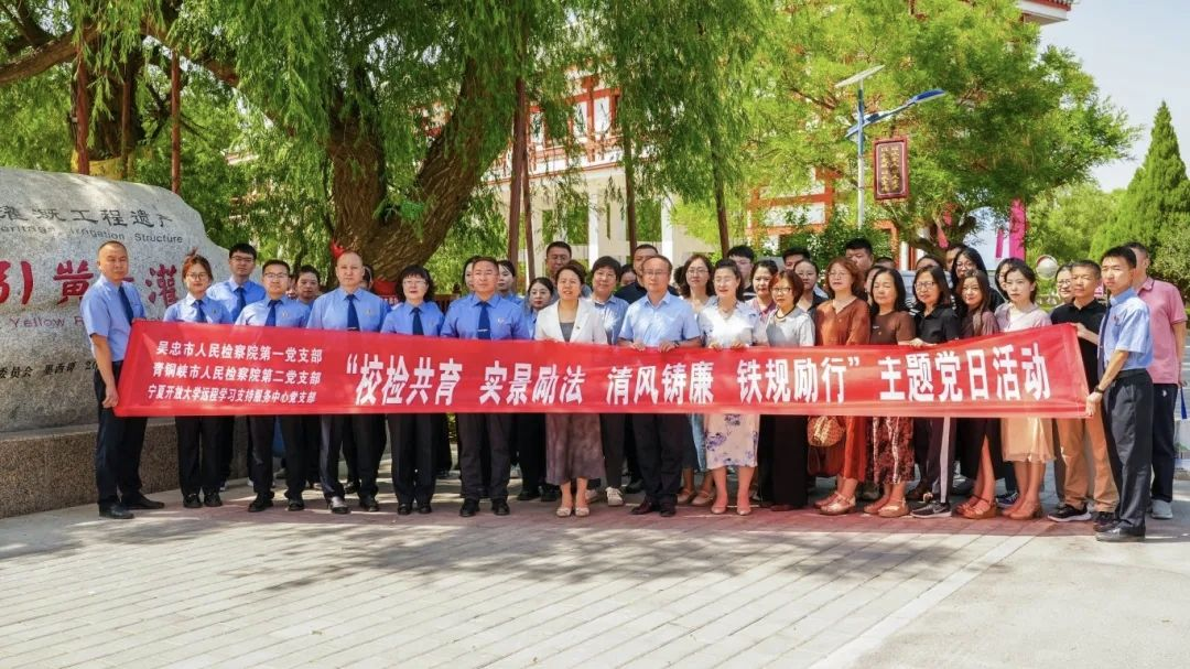 活动首站,全体党员来到了世界灌溉工程遗产——宁夏引黄灌溉区,这里不仅承载着千年的水文化和历史,更是青铜峡市人民检察院以“九渠青绿”党建品牌为抓手,守护古灌区、古灌渠永续发展的生动实践。通过沉浸式案例教学,党员们深刻感受到了检察机关在推动检察公益诉讼与生态保护深度融合方面的积极作为,以及“绿水青山就是金山银山”理念的生动实践。