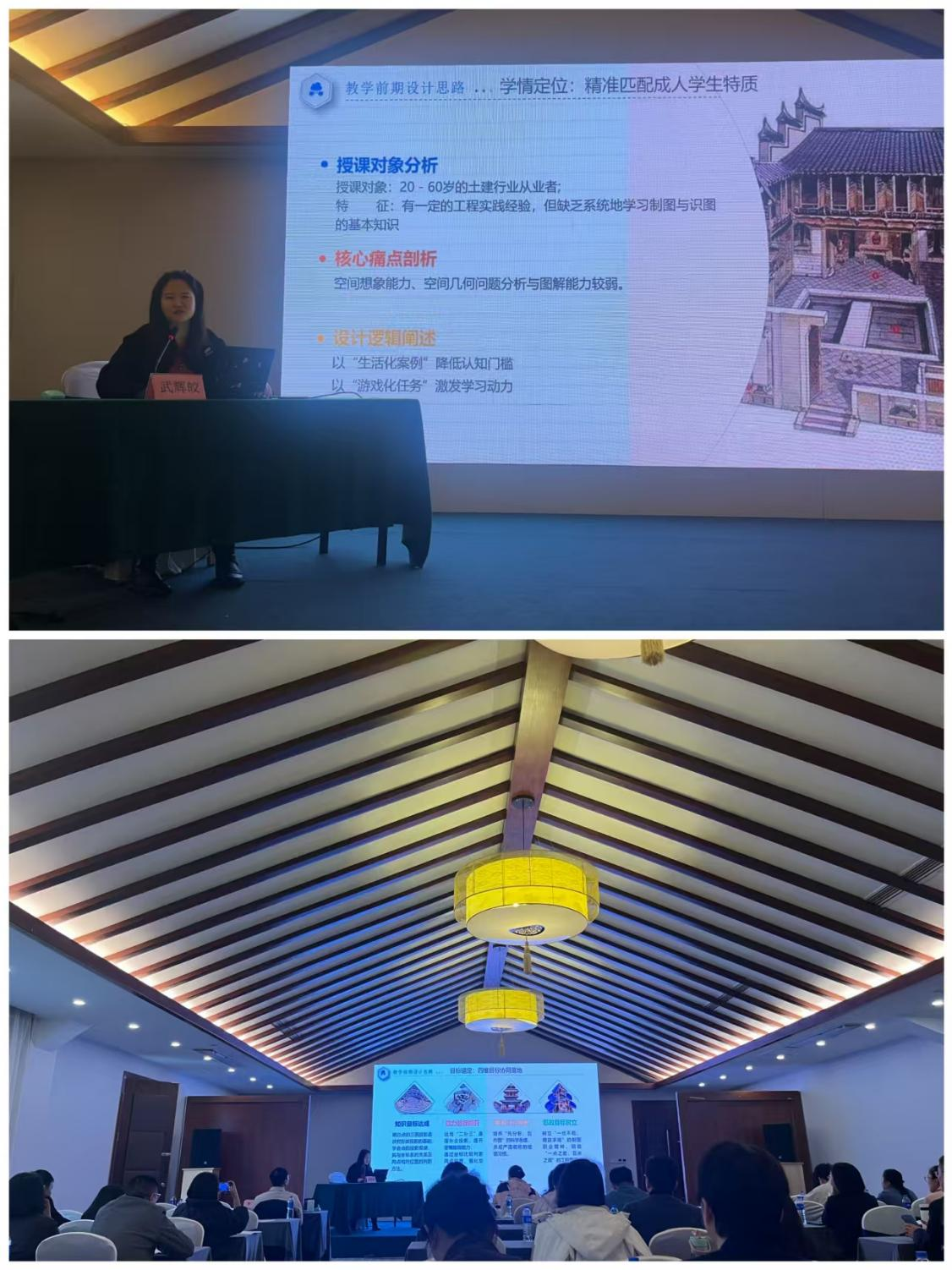 当日下午,米兰游戏官方网站(中国)米兰有限公司官网土建类专业教师武辉皎聚焦土建类基础课程教学创新,以“以境促学,以玩促练:建筑制图基础教学实践探索”为题作分享,重点突出AI技术在教学中的创新应用。针对土建类专业学生学习建筑制图时空间想象能力薄弱、学习兴趣不足等痛点,武辉皎老师介绍了团队打造的“AI+教学”新模式:通过AI数字人讲述建筑制图相关历史故事,生动导入课程内容;借助AI技术设计“大富翁闯关”等互动游戏,将抽象的制图知识转化为趣味化练习;帮助学生快速理解空间结构。为全国土建类专业基础课程教学改革提供了可借鉴的实践经验。