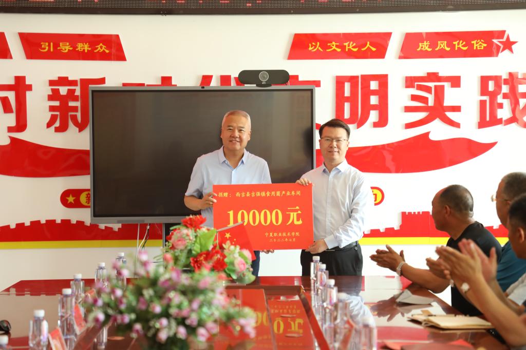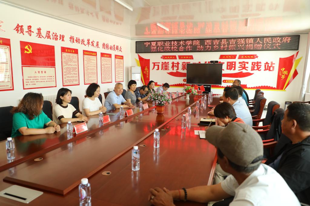 在万崖村,苏晓军与西吉县委副书记庞子杰、县委常委魏廷峰、吉强镇党委书记李学智就进一步落实校政企签约合作事宜深入交谈,并向当地帮扶车间捐赠了由工业工程学院提供的一万元捐款,调研当地农户生产经营状况。宁夏农业学校专家入户开展食用菌种植技术培训和技术指导。