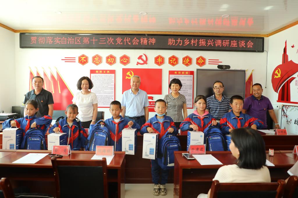 在马莲乡,苏晓军一行召开“贯彻落实自治区第十三次党代会精神 助力乡村振兴调研座谈会”。会上向学校帮扶村小学生捐赠了由工会组织、全校教职工捐款购买的价值三万多元的爱心书包,以及由工业工程学院提供的一万元捐款。马莲乡乡长王如林表达了对学校多年来无私支持的诚挚谢意,帮扶村第一书记王维东和王立嵘汇报工作并表态。