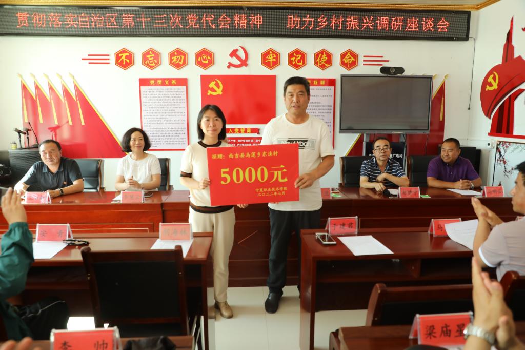 苏晓军指出,适逢“七一”,在全区上下深入学习宣传贯彻自治区第十三次党代会精神,在学校去年各项帮扶支持计划全部落实落地,以及驻村工作队履新整一年的背景下,学校在马莲乡开展的调研捐赠活动意义深远。他希望校地双方进一步协同发力,团结奋斗、真抓实干,共同为擘画现代化美丽新宁夏美好蓝图做出新的更大的贡献。他还勉励驻村干部要紧紧围绕“建强村党组织,推进强村富民,提升治理水平,为民办事服务”四项主要任务,用心用情用力在巩固拓展脱贫攻坚成果和推进乡村振兴主战场上奋力挥洒无悔青春。