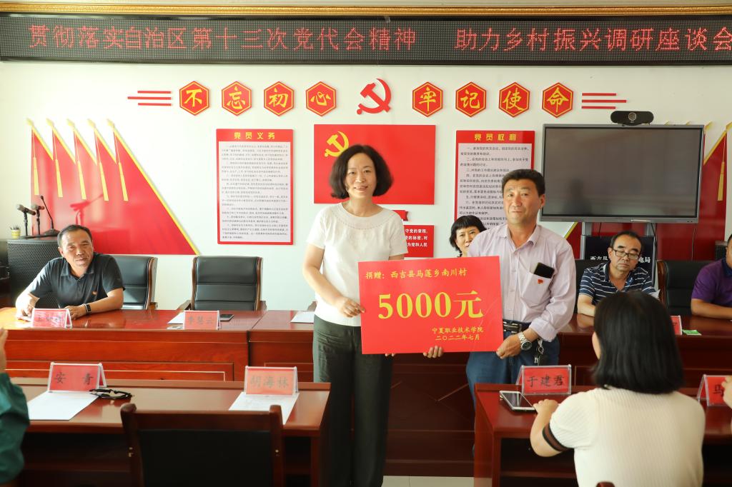 7月1日下午,带着全校师生美好的祝福,学校党委副书记苏晓军带领组织人事部、工会、工业工程学院、教学督导室、宁夏农业学校有关同志,赴西吉县吉强镇万崖村帮扶车间和马莲乡帮扶村开展调研和捐赠活动。