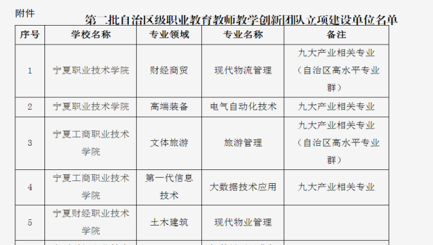 至此,我校共立项建设国家级职业教育教师教学创新团队1个,自治区级职业教育教师教学创新团队4个。学校将以此为抓手,加强团队建设,充分发挥国家级、自治区级教师教学创新团队的引领示范作用,带动校级教师教学创新团队发展, 以全面提高专业人才培养质量为目标,创新人才培养模式,整合优质教学资源,推动我校教育教学改革,助力“双高校”建设。