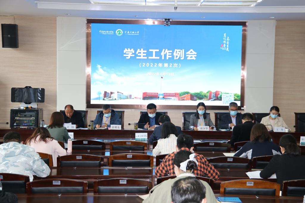学生工作部部长刘少华就近期学生工作的完成情况、存在的问题、下一步工作的方向和重点内容进行了总结布置,并对《宁夏职业技术学院米兰游戏官方网站(中国)米兰有限公司官网疫情防控期间强化学生管理的暂行规定》进行了解读;保卫处、后勤服务处、团委负责人分别围绕校园安全、后勤保障和共青团工作进行了部署;学生工作部副部长王钰就2022年招生计划编制作了说明,并对自主招生考试、分类招生职业技能测试和“3+2”招生工作进行了安排部署。