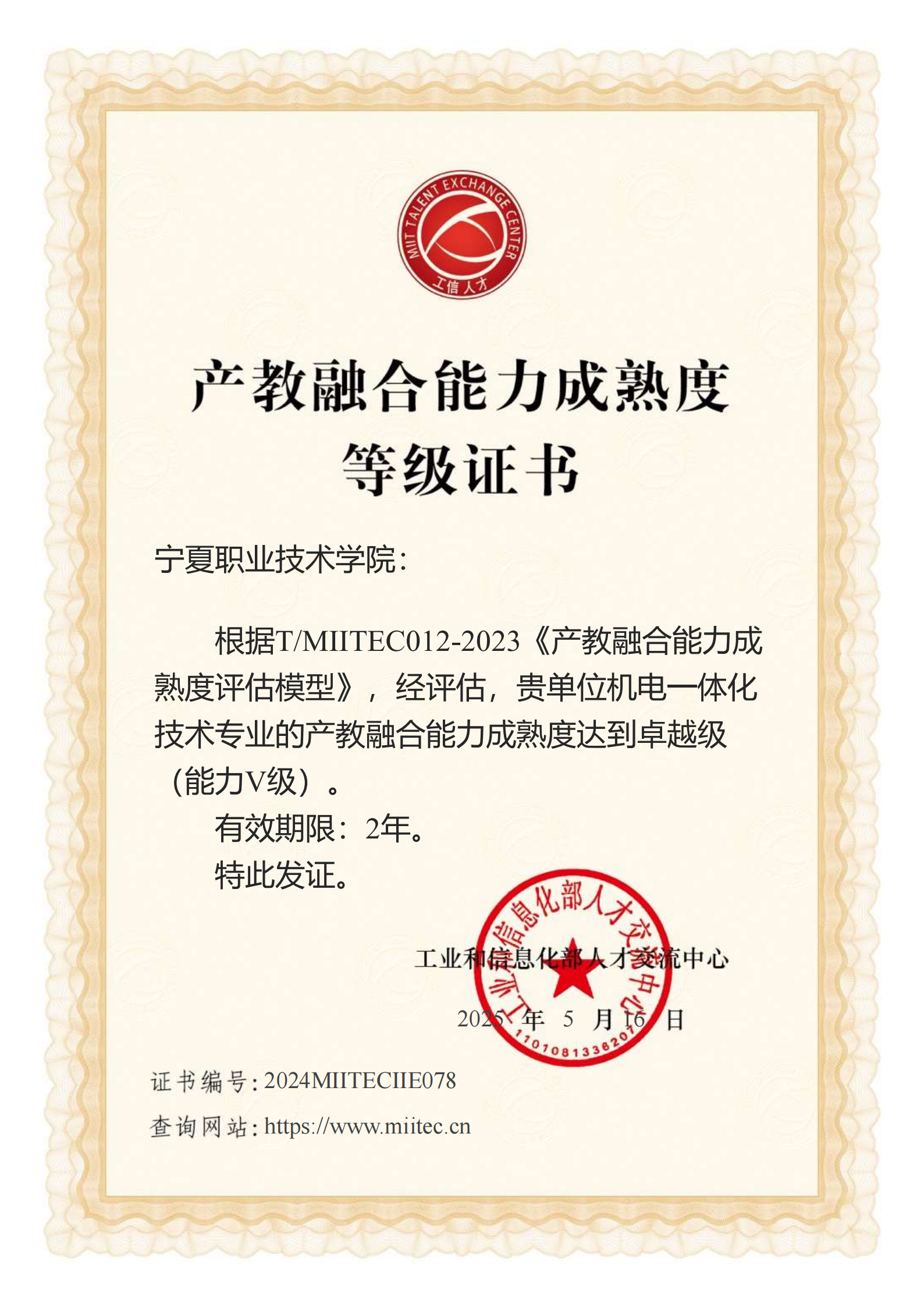 近年来,学校坚持创新驱动、错位竞争、突出特色、开放办学、统筹协调的发展理念,紧紧围绕宁夏产业需求规划和设置专业,现有高职专业38个,职业本科专业5个,建成4个全国首批现代学徒制试点专业,获批1个国家级现场工程师联合培养项目,14个教育部“高等职业教育创新发展行动计划”项目、45个“宁夏职业教育提质培优行动计划”项目,获批建设宁夏职业院校专业类课程教材研究基地,荣获国家级职业教育教学成果奖一等奖和二等奖各1项。首批获批的2个国家级产教融合专业建设成效显著,机电一体化技术专业产教融合能力成熟度达到了卓越级,计算机网络技术专业达到了优秀级,为现代化美丽新宁夏建设培养了一大批高技能人才。