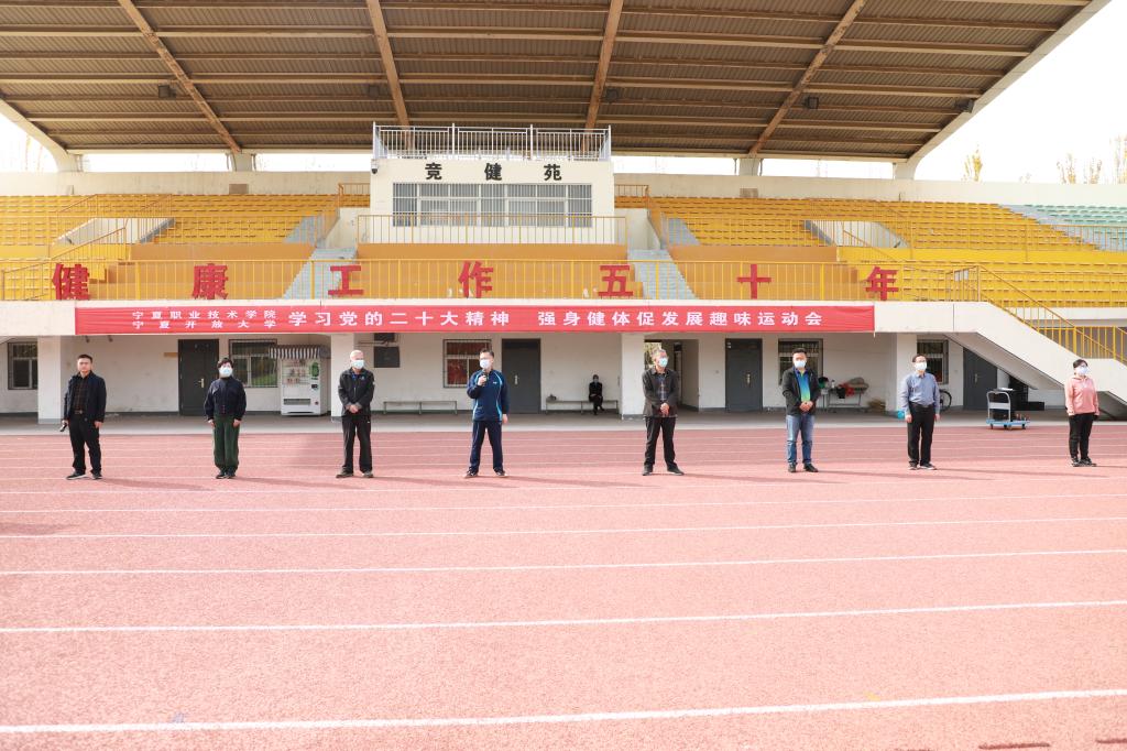 党委书记赵利宁为本届趣味运动会致开幕词,他指出,刚刚结束的党的二十大是在全党全国各族人民迈上全面建设社会主义现代化国家新征程、向第二个百年奋斗目标进军的关键时刻召开的一次十分重要的大会,举国关注、举世瞩目。习近平总书记所作的党的二十大报告,进一步指明了党和国家事业的前进方向,是我们党团结带领全国各族人民在新时代新征程坚持和发展中国特色社会主义的政治宣言和行动纲领。学习宣传贯彻党的二十大精神是当前和今后一个时期的首要政治任务。今天学校举行“学习党的二十大精神,强身健体促发展”趣味运动会,目的是让大家在紧张的防疫、教学工作之余,缓解工作压力,形成健康宁职、运动宁职、奋进宁职、快乐宁职的活动氛围,希望各位教职工在趣味中享受运动的快乐,工作运动相得益彰,以健康的体魄和饱满的精神投入到工作和生活中去。