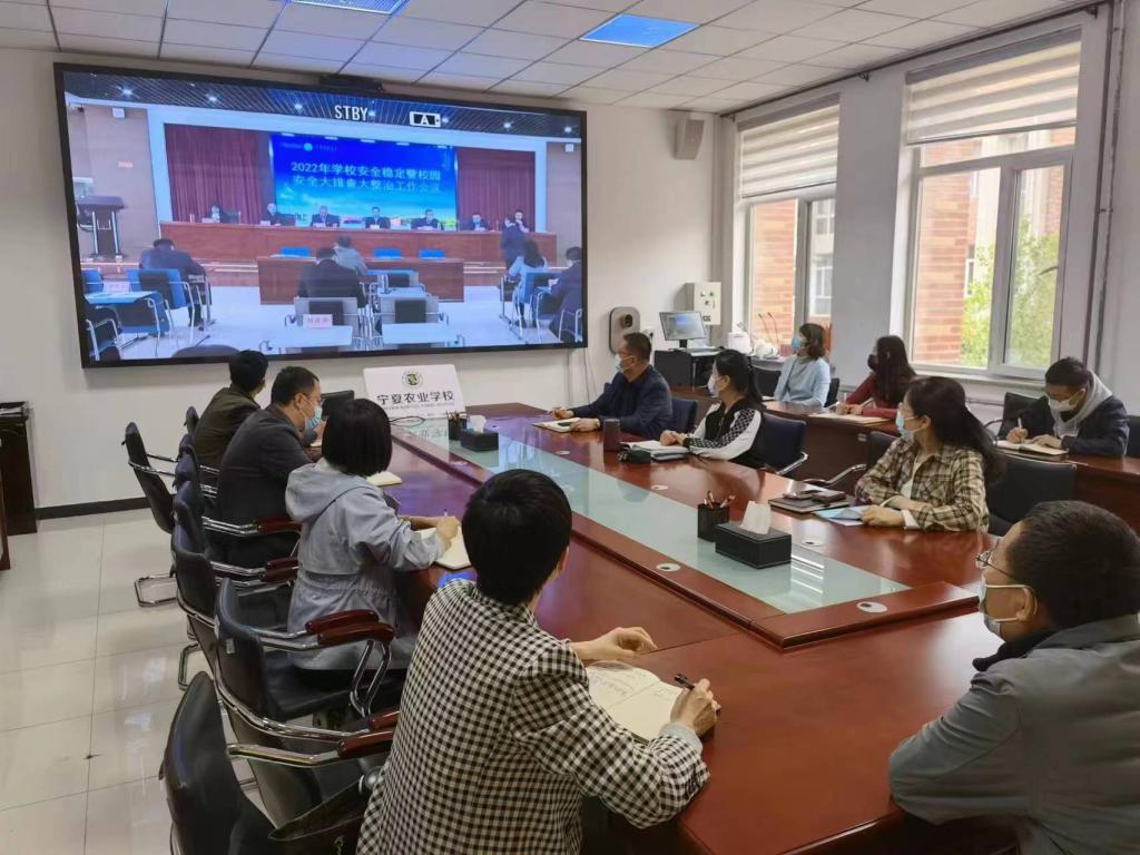 教务处、学生工作部、后勤服务处、工业工程学院、宁夏农业学校负责人分别进行了交流发言。大家既交流了思想认识、工作思路,也提出了对做好校园安全稳定工作的决心和信心。