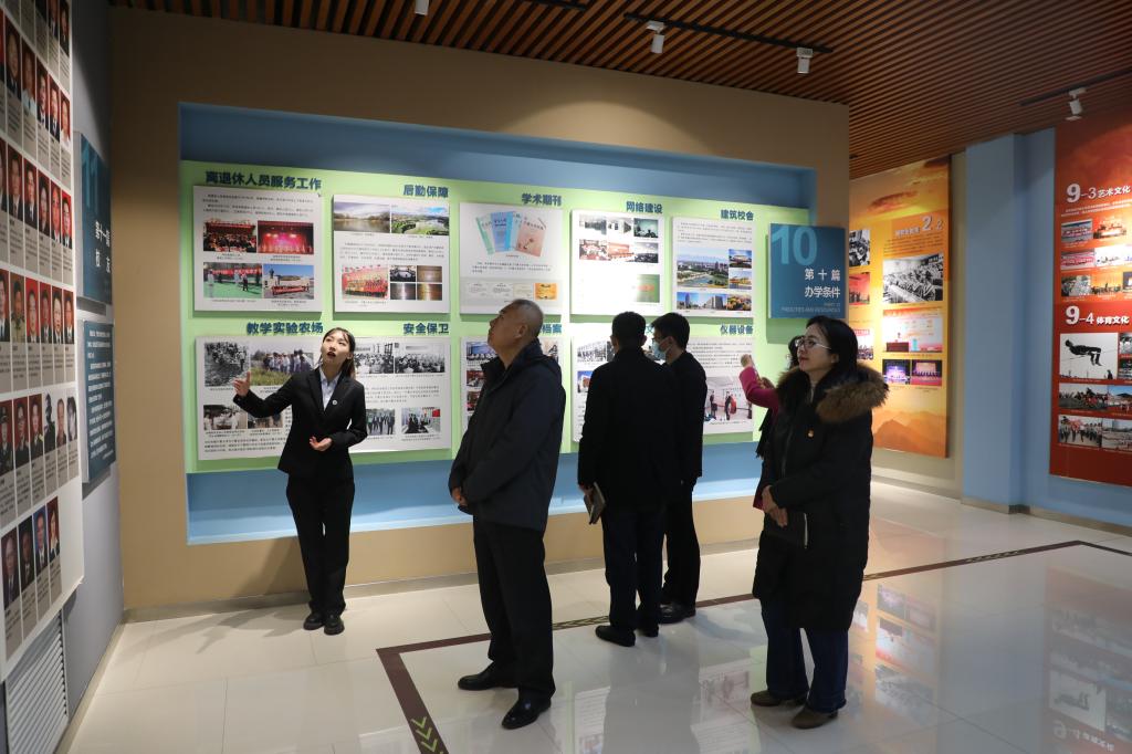 在宁夏大学校史馆,党委副书记苏晓军认真听取了学生讲解员的介绍,深入了解宁夏大学发展历程与历史沿革、学科建设、研究成果、突出人才、优秀校友等内容,并询问校史馆筹建时期需要做的准备、建设过程中需要注意的问题。