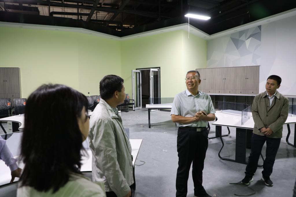 调研组一行先后深入工业工程学院、商学院、软件学院、生命科技学院、马克思主义学院、宁夏农业学校查看了智能制造实训中心、阿里巴巴智慧校园、亚马逊云创应用学院、海康威视人工智能联合实验室、华为“ICT学院”、华为实验实训室、鲲鹏展示交流中心、无人机实训中心、植物萃取室、农产品质量安全检测中心、马克思主义学院思政课教学实践基地、食用菌玻璃温棚及学院文化建设等进展情况,并围绕项目建设资金、建设现状、设计风格、室内空间、功能布局、节能环保等问题进行了现场研讨。