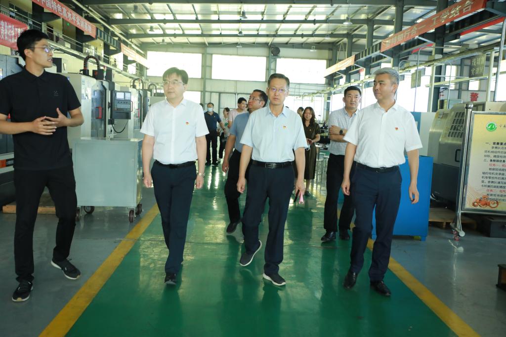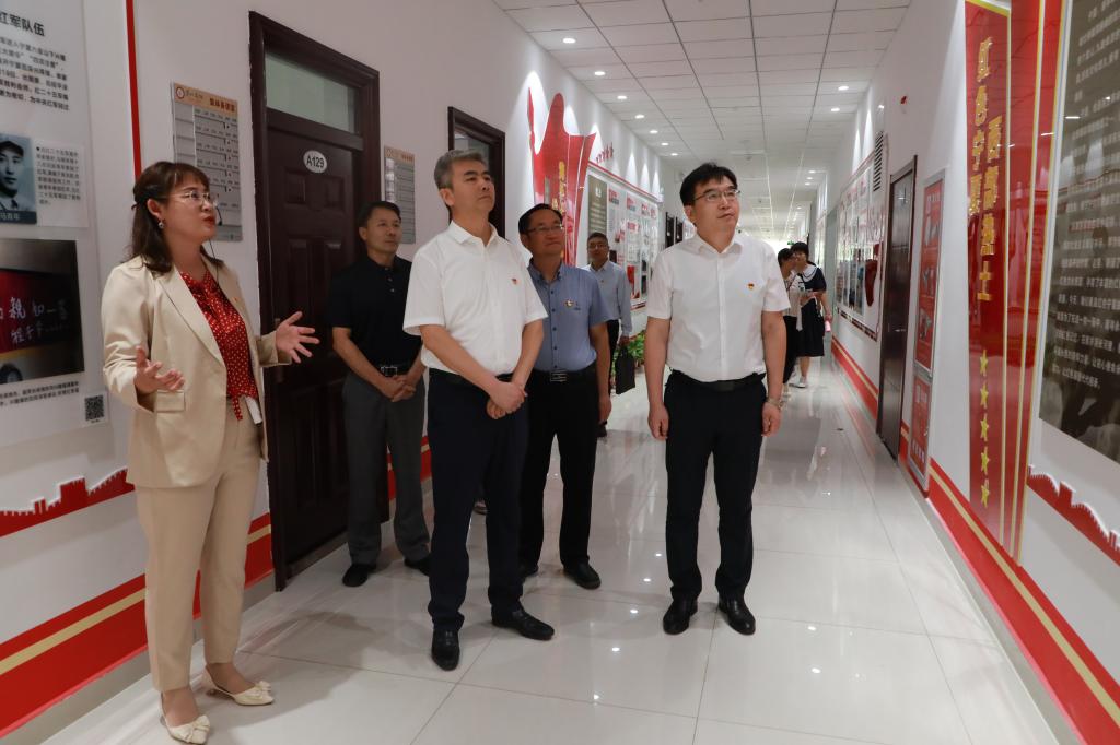 在工业工程学院智能制造实训中心、产教融合创新中心党员干部纷纷驻足,详细了解工程技术应用站、远程实景教学平台、智能制造设备、数控机床等实训设备及功能,了解学校强化产教融合,校企共建、共育、共享人才培养模式。